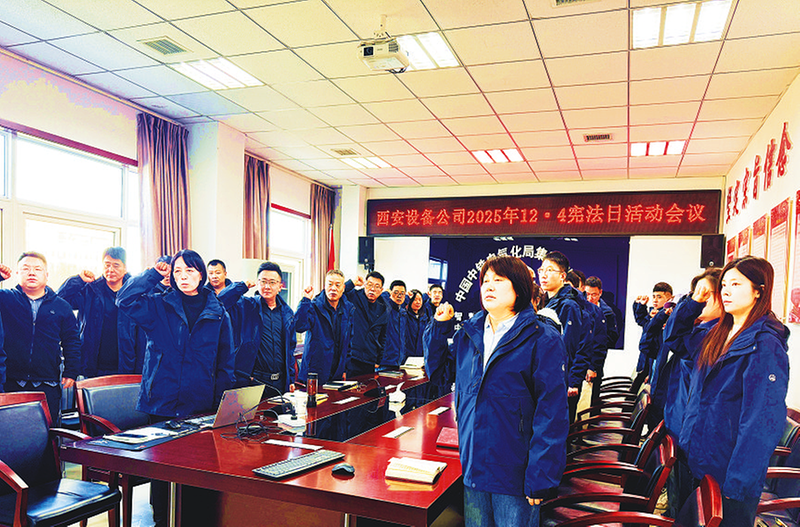 ??12月4日,中鐵電氣化局智慧交通公司西安設(shè)備公司開展“國家憲法日”活動,引導(dǎo)員工切實將尊崇憲法、維護憲法的理念轉(zhuǎn)化為自覺行動。圖為宣誓環(huán)節(jié)。張永光 高揚 攝影報道