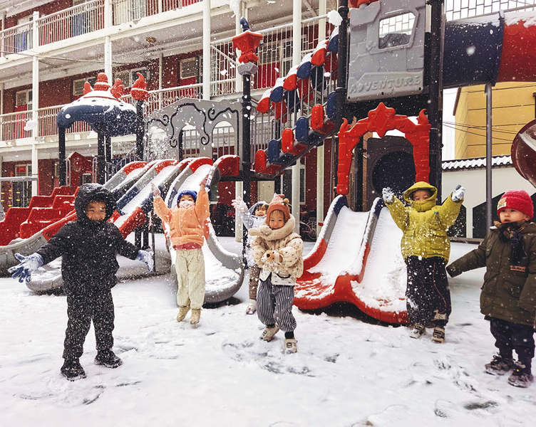 ??近日,中鐵六局信達(dá)置業(yè)公司太原幼兒園披上銀裝,在老師的引導(dǎo)下,孩子們玩雪并感知自然,變寒冷雪日為生動(dòng)課堂。?馬星星 攝