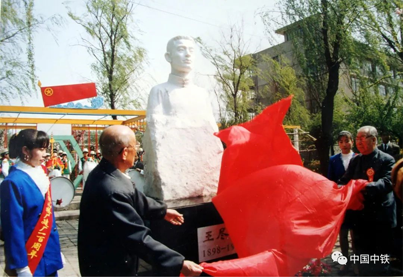 1994年4月28日,原冀熱遼軍區(qū)司令員、原交通部黨組書記、中顧委委員李運(yùn)昌與革命先烈王盡美之子、原吉林省軍區(qū)副司令員王乃征為中鐵山橋王盡美塑像揭幕。