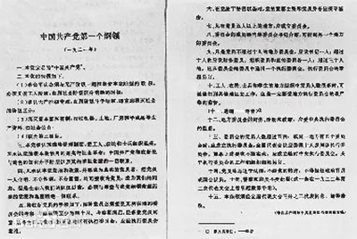 會(huì)議首先通過(guò)了《中國(guó)共產(chǎn)黨綱領(lǐng)》。黨綱開宗明義第一條即是“本黨定名為中國(guó)共產(chǎn)黨”,提出“黨的根本政治目的是實(shí)行社會(huì)革命”“把工人、農(nóng)民和士兵組織起來(lái)”,綱領(lǐng)則是“革命軍隊(duì)必須與無(wú)產(chǎn)階級(jí)一起推翻資本家階級(jí)的政權(quán)”“承認(rèn)無(wú)產(chǎn)階級(jí)專政”“消滅資本家私有制”“聯(lián)合第三國(guó)際”。