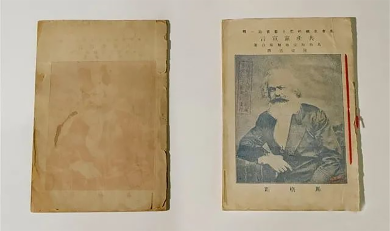 2020年6月23日新華社記者在中共一大會(huì)址紀(jì)念館拍攝的1920年8月(左)和9月出版的《共產(chǎn)黨宣言》中文全譯本。